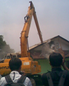 Dibantu dengan sebuah alat berat, banguan tersebut akhirnya diluluhlantakkan, hingga sejajar dengan tanah.