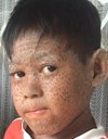 Bocah malang tersebut bernama Rizki Maulana (8). Anak pertama pasangan suami istri, Ayi (45) dan Ijah (43) warga Jl Imbanagara, Kabupaten Ciamis ini, hampir seluruh bagian tubuhnya dipenuhi bintik bintik menyerupai sisik ular. Bahkan sisik tersebut juga hampir menutup seluruh wajah.