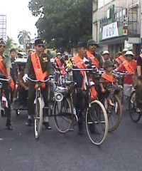 Komunitas sepeda ontel tersebut mengawali konvoi dari Pos Adipura depan Masjid Agung menuju Jalan Nagarawangi dan berhakhir di kantor KPUD Kota Tasikmalaya di Jalan SKP.
