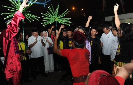 Calon gubernur DKI Jakarta, Alex Noerdin didampingi isri, disambut kesenian Betawi dalam acara Malam Silaturahmi tokoh dan masyarakat Se-Kecamatan Tanah Abang.