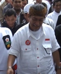 Meski lokasi sempat diguyur hujan, keluarga besar padepokan tetap setia menunggu dan menyambut hangat Cawagub sekaligus aktor senior tersebut.