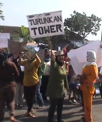 Aksi puluhan massa yang didominasi ibu-ibu ini dilakukan depan kantor Kecamatan Purbaratu. Alasannya pembongkaran tower karena tidak memilik izin yang syah dari Pemkota Tasikmalaya. Selain itu, sebelum pembangunan tower tidak pernah disosialisaskan kepada warga setempat. Bahkan ketua RT dan RW pun tidak tahu ada pembangunan tower.
