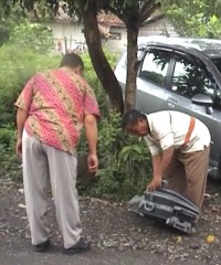 “Awalnya tas itu tersimpan di kursi kayu dekat garasi mobil. Takut benda didalamnya meledak, tas dipindahkan warga ke pohon mangga. Kita sudah mengontak polisi sejak pagi. Tapi datangnya kelamaan,†kata Jajang, warga setempat.