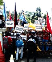 Massa pendemo itu berasal dari Front Pengawal Program Pro Rakyat dan berbagai aliansi seperti Demokrasi Jakarta, Serikat Nelayan Tradisional DKI Jakarta, Gerakan Rakyat Proletar, Serikat Pemuda Kampung Rawa dan Aliansi Pro Rakyat. Di depan gedung wakil rakyat itulah mereka kembali menyuarakan protes terhadap program Kartu Jakarta Sehat (KJS) yang diusung pasangan Gubernu Joko Widodo dan wakilnya, Basuki Tjahaja Purnama.