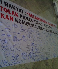 Rakyat Merdeka Online, massa dari perwakilan empat kelurahan di Jakarta itu dalam aksinya membawa serta spanduk berisi tanda tangan. Aksi berjalan damai hingga berakhir.