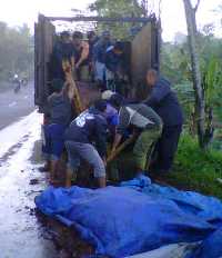 Menurut sopir truk, Ling (45), semua sapi yang dibawa 22 ekor. Jam menunjuk pukul 01.30 WIB. Tepat melintas di Kampung Sukaroya, tiba-tiba 6 ekor sapi kabur melewati pintu belakang dengan cara di tendang. Karuan Ling panik. Cepat menghentikan mobil. Sapi sulit ditangkap. Binatang itu mengamuk. Malah Ling nyaris jadi korban setelah diseruduk. Jam menunjuk pukul 05.00 WIB. Cepat Iing lapor Polsek Jamanis. Dua polisi bersenjata lengkap datang. Akhirnya diputuskan untuk melumpuhkan sapi dengan cara ditembak.