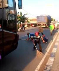 Padahal di sisi lain, mereka merasa takut tertabrak sejumlah kendaraan, namun mereka rela hanya untuk mendapatkan rupiah demi kebutuhan belanja lebaran bagi keluarganya. Bahkan salah seorang ibu bernama Darmini (39) sengaja mengajak kedua anaknya yaitu tedi (9) dan indah (7) untuk mengais recehan dari pengguna jalan.