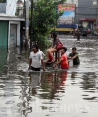 Hujan deras selama lebih dari 1,5 jam dengan intensitas tinggi menyebabkan beberapa anak sungai meluap karena tidak mampu menampung limpasan permukaan dari beberapa tempat. Terbatasnya kawasan resapan air dan minimnya kemampuan sarana drainase juga menyebabkan wilayah mudah mengalami banjir akibat hujan sesaat.