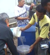 Antrian warga yang membawa jerigen di Kampung Tanjung, Talaga Sari, Kawalu, Kota Tasikmalaya, bukanlan antrian untuk mendapatkan bahan bakar minyak. Namun warga mengantri untuk mendapatkan air khas Tanjung yang akan digunakan untuk memasak ketupat.