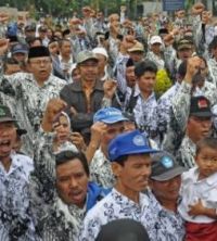 "Yang ikut aksi sekitar 200 orang. Kami sengaja tidak mengerahkan segenap kekuatan agar proses belajar mengajar di sekolah tidak terganggu. Ini baru sekitar 25 persen anggota PGRI Karangpucung," jelasnya.