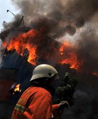 Petugas Pemadam Kebakaran yang dikerahkan, saat ini tengah berupaya menjinakkan kobaran api pada bangunan yang saban hari dipergunakan sebagai kantor Dinas Pendapatan dan Dinas Keuangan Pemkot Bandung.