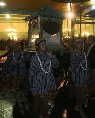 "Setelah dikonsultasikan dengan Walikota Solo, akhirnya acara Kirab 1 Suro di Kraton Kasunanan malam ini oleh PB XIII, akan ditiadakan dan tidak dilaksanakan atau disuwak," ujar kerabat Keraton yang pro Dwitunggal, G.P.H. Suryo Wicaksono, kepada