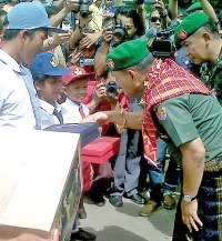 Rp 1,2 miliar tersebut terdiri dari beras, seragam sekolah, minyak goreng, mi instan, selimut, pakaian dan peralatan sekolah. Bantuan ini merupakan bantuan dari Paguyuban Sekata untuk Kemanusiaan (PUSAKA) bekerjasama dengan TNI Angkatan Darat.