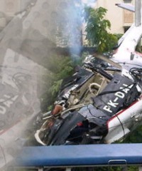 Nanang menuturkan, heli tersebut berputar selama lima menit sebelum jatuh tepat di sisi Jalan Jamin Ginting, depan RS Efarina Etaham.