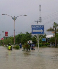 Sejumlah kantor instansi pemerintahan di Kota Indramayu, Jawa Barat, ikut terendam banjir. Seperti terlihat di kantor Samsat Indramayu, Jalan Kartini, pagi tadi (Senin, 20/1).