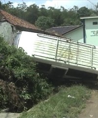 Diduga rem blong, sebuah mini bus syarat penumpang di Kota Tasikmalaya menabrak warung milik warga hingga nyaris ambruk, tadi siang (Minggu, 26/1). Meski tidak ada korban jiwa, sejumlah penumpang mengalami luka.