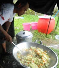 Mengatasi suasana sendu ini, malam itu Thebil meracik menu khusus untuk anak-anak pengungsi. Mungkin menu ini biasa saja dalam situasi situasi normal, tapi tidak untuk di pengungsian. Tim Dapur Umum menyiapkan capcay kuah, nasi uduk dan ayam opor. Ini mengubah menu harian yang sebelumnya hanya berupa mie instan dan telur dengan kombinasi tahu tempe. Bukan tanpa alasan Tim dapur umum ACT menyiapkan menu khusus ini.