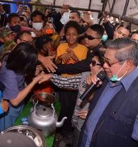 Dengan ramah Presiden SBY dan Ibu Ani menyapa, menyalami, dan berdialog dengan para pengungsi. Presiden menanyakan apakah mereka mendapatkan pelayanan dan pengamanan yang dibutuhkan. Kepada para pengungsi, Presiden mengingatkan mereka untuk mematuhi imbauan petugas jika memang dilarang masuk kawasan berbahaya.