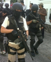 Selang 20 menit kemudian, personel kepolisian dari Polsek Lengkong dan Regol tiba di lokasi untuk melakukan pengamanan aksi. Namun situasi kian memanas hingga akhirnya datang pasukan huru hara dari Brimob Polda Jabar. Bersamaan dengan aksi massa di depan kantor KPU, terdengar kabar bahwa ketua KPU Jabar disandera oleh empat orang pendemo di ruang rapat. Kapolda Jabar Irjen Mochammad Iriawan pun mengintruksikan melakukan langkah penyelamatan paksa dengan menurunkan pasukan anti teror.