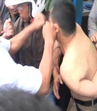 Meski mendapat pengawalan ketat polisi, tersangka bernama Heindar warga Palembang Sumetera Selatan, tetap jadi bulan bulanan amukan massa ketika akan dinaikan ke mobil.