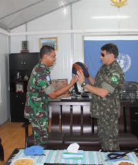 Selesai memberikan pesan, Force Commander menerima paparan dari Dansatgas diruang konferensi tentang tugas-tugas yang telah dan sedang dikerjakan oleh Satgas Kizi TNI. Acara kunjungan kemudian diakhir dengan ramah tamah, serta pemberian cendera mata kepada Force Commander berupa Blangkon dan beberapa CD Film kebudayaan dan Pariwisata Indonesia yang merupakan salah satu upaya sebagai duta bangsa untuk mempromosikan kebudayaan Indonesia.