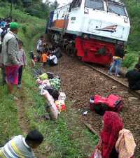 "Dibelakang KA ada jembatan bernama Curug Gawang mengalalami uduh dan bantalan rel ranahnya labil," kata Serda Dadang, Anggota TNI Koramil Kadipaten di lokasi kejadian, Jumat (27/6).