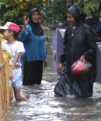 Memang sejak tanggul jebol, kampung tersebut menjadi langganan banjir. Tapi banjir kali ini paling parah karena ketinggian air di teras rumah mencapai 30 hingga 60 centi meter.
