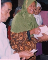 Para penerima bantuan, dikatakan Beben, berdasarkan data dari Badan Amil Zakat Nasional Kota Tasikmalaya. Setiap penerima mendapatkan paket sembilan bahan pokok.