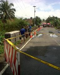 "Di sana kan ada lubang sangat besar, jadi tanah terus menerus amblas karena tidak ada kekuatan. Sedangkan penyangga jembatan sudah ambrol ke saluran sungai," ungkap AKBP Witnu Urip Laksana.