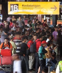 Sebelumnya puncak arus mudik di Bandara Soekarno-Hatta terjadi pada hari Jumat (25/7) atau H-3 lebaran dengan jumlah penumpang mencapai 213.545 orang.