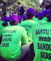 'Bantu kami membuat Bandung bersih'. Bersama 100-an penyapu jalan baru, kolaborasi dengan pengusaha-pengusaha yang cinta bandung," ungkap Walikota Bandung, Ridwan Kamil, Selasa (5/8).