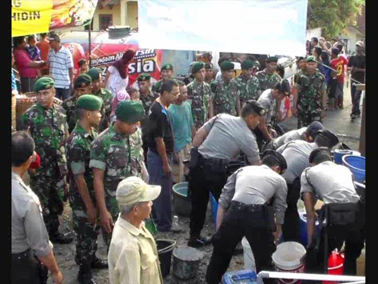 Meski air sumur tersebut kondisinya kotor, warga tidak punya pilihan lain dan menggunakan air tersebut untuk mandi, cuci, kakus. Tak heran ketika TNI-Polri memberikan bantuan satu tangki air bersih, warga antusias untuk mendapatkannya.