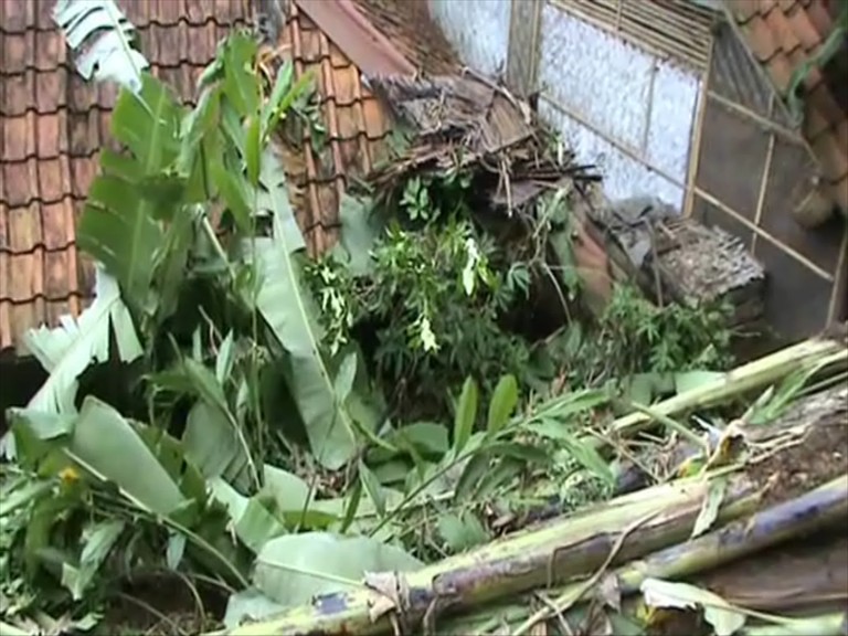 Longsornya tebing terjadi ketika turun hujan deras. Saat mendengar suara gemuruh tebing longsor, penghuni rumah segera keluar untuk menyelamatkan diri.