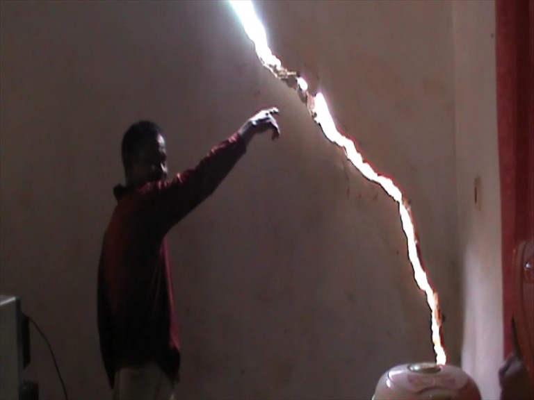 Kerusakan rumah cukup bervariatif mulai rusak ringan, sedang hingga rusak berat. Selain lantainya terbelah, banyak rumah warga yang bagian dindingnya belah. Bahkan diameter belah mencapai 50 hingga 70 centimeter.
