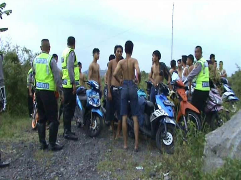Sebagian dari mereka yang kabur ke lembah curam, sepeda motornya terjungkal. Polisi pun dengan susah payah membawa sepeda motor pembalap liar tersebut ke jalan raya.