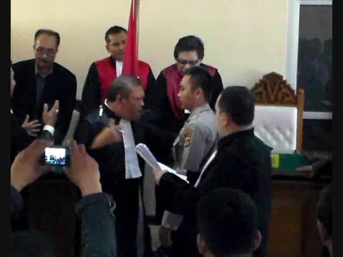 Ya, kericuhan tak bisa dielakan di salah satu ruangan Pengadilan Negeri Tasikmalaya. Seorang anggota polisi yang mencoba melerai diusir pengacara terdakwa. Ugh, langkah hakim yang hendak meninggalkan ruangan pun dihalang-halangi. Pihak pengacara dianggap terburu buru menutup persidangan.