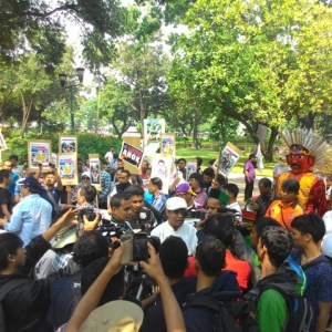 Seruan itu disampaikan aktivis Bursah Zarnubi yang ikut dalam aksi "Lawan Ahok" di kediaman dinas Gubernur DKI, Menteng, Jakarta (Jumat, 28/8).