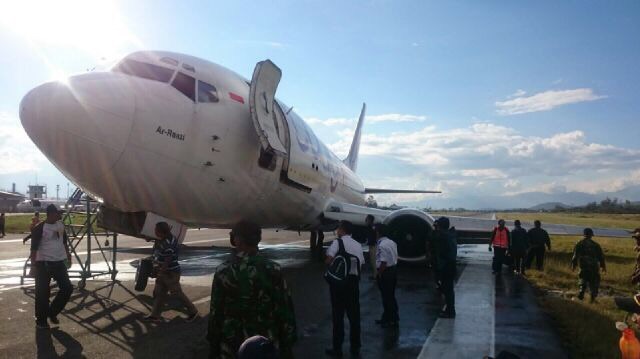 Pesawat mengalami lepas kendali karena anlog ban pesawat sebelah kiri patah dan menyebabkan pesawat tergelincir ke sebelah kiri.