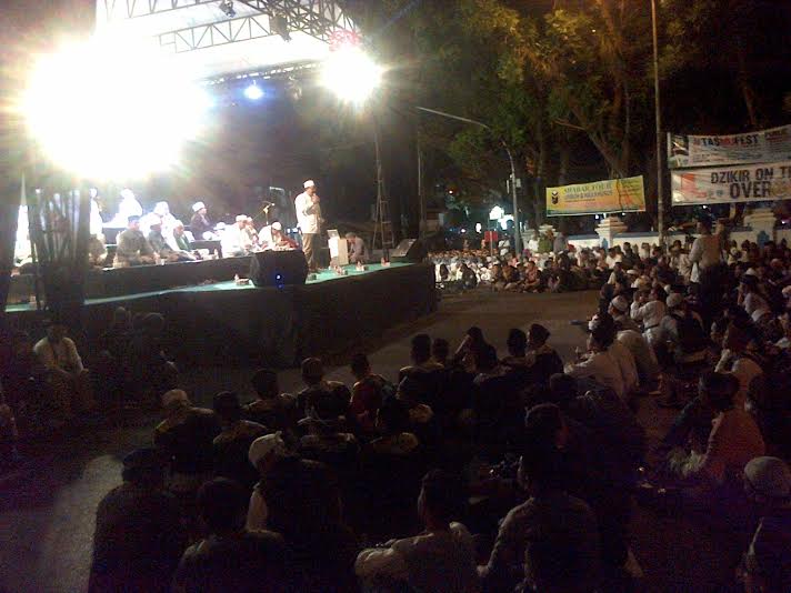 Sementara itu di depan masjid Agung Tasikmalaya ribuan umat Islam turun ke jalan. Mereka melakukan salat berjmaah dan dzikir bersama di jalan raya. Para santri, ustadz dan ulama ini melaksanakan solat Maghrib berjamaah. Kegiatan solat berjamaah tersebut merupakan salah satu rangkaian kegiatan menyambut tahun baru Islam.