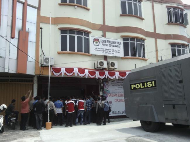 Kedatangan mereka untuk menolak campur tangan aparat oknum TNI AD dalam Pilkada Kepri. Sebagaimana diberitakan sebelumnya, saat pencoblosan berlangsung di Kepri, banyak anggota TNI AD dengan senjata laras panjang tersebar di setiap sudut di Provinsi Kepri khususnya di Tempat Pengutan Suara (TPS), Panitia Pemungutan Suara (PPS), Panitia Pemilihan Kecamatan (PPK) dan KPU Kepri.