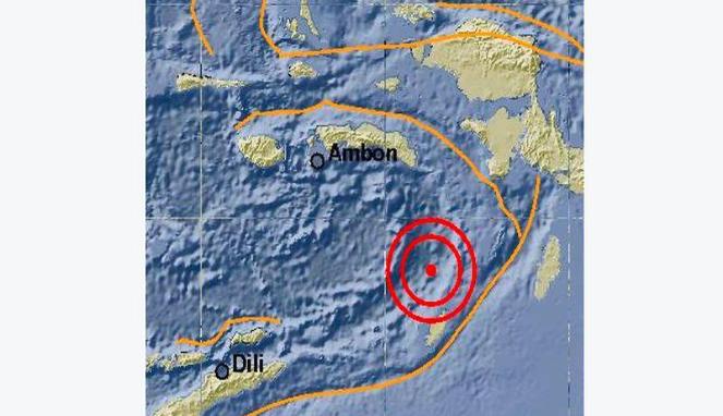Pusat gempa di 242 kilometer barat laut Maluku Tenggara Barat atau 311 km timur laut Maluku Barat Daya.