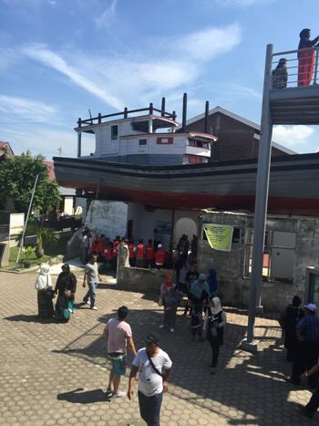 Dia masih terisak mengenang itu. Saat air surut, kapal kayu seberat 65 ton yang dia naiki, ternyata tersangkut di tengah pemukiman penduduk di wilayah Lampulo, 1,5 kilometer dari Sungai Krueng Aceh.