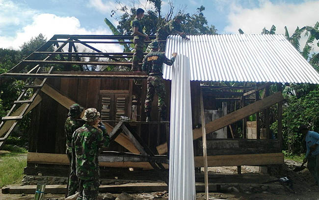 . Disamping melaksanakan tugas pokok sebagai satuan terdepan dalam menjaga perbatasan RI-Papua Nugini, Satgas Yonif Raider 411/Pandawa Kostrad juga melaksanakan berbagai kegiatan di bidang teritorial salah satunya adalah kegiatan karya bhakti ikut membantu membangun rumah warga.