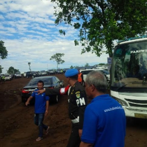 Kondisi jalan masih tanah becek dan belum diaspal, membuat kendaraan sulit bergerak. Alhasil, terjadi antrean hingga tiga kilometer (km) dan sempat tak bergerak lantaran kondisi tanah bercampur lumpur. Panitia menyediakan bus untuk seluruh tamu undangan ke lokasi acara karena minim tempat parkir.