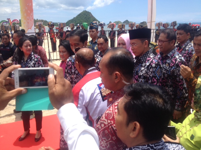 Presiden Jokowi dan Sabar Gorky bertemu usai acara puncak Hari Pers Nasional (HPN) 2016 yang berlangsung di Kawasan Ekonomi Khusus (KEK) Mandalika, Nusa Tenggara Barat, Selasa, (9/2).