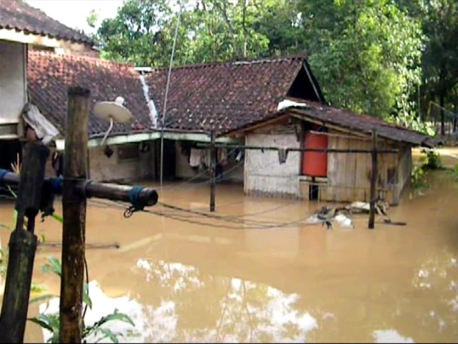 "Rumah saya kebanjiran sejak malam. Ketinggian air di rumah saya satu meter setengah. Air meluap dan merendam kampung gara gara tanggul sungai Cikidang jebo," kata Dede Ruhaedah, salah seorang warga yang rumahnya terendam banjir.