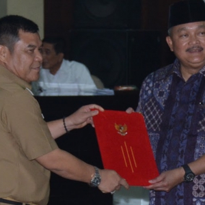 "Penyerahan pemberhentian sementara Bupati Ogan Ilir AW Nofiadi, dan pengangkatan Pelaksana Tugas Bupati sementara kepada Ilyas Pandji Alam," kata Alex usai penyerahan SK pemberhentian sementara, seperti diberitakan
