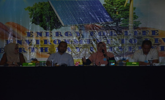 RMOL Sumsel, Rosyida Rozali, saat menjadi pembicara dalam seminar internasional Peringatan Hari Bumi 2016 dengan tema Energy for Life, Environment to Live, Earth Day Is Everyday yang diselenggarakan Yayasan Alam Melayu Sriwijaya (Malaya), di Kuto Besak Theatre Restaurant (KBTR) Palembang (Rabu, 23/3).