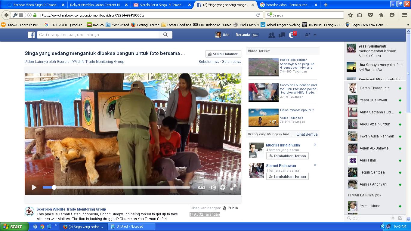 Video seekor singa di Taman Safari Indonesia di Bogor, Jawa Barat, menghebohkan dunia maya. Dalam video terlihat singa seperti dibius sehingga mengantuk demi foto bersama pengunjung.