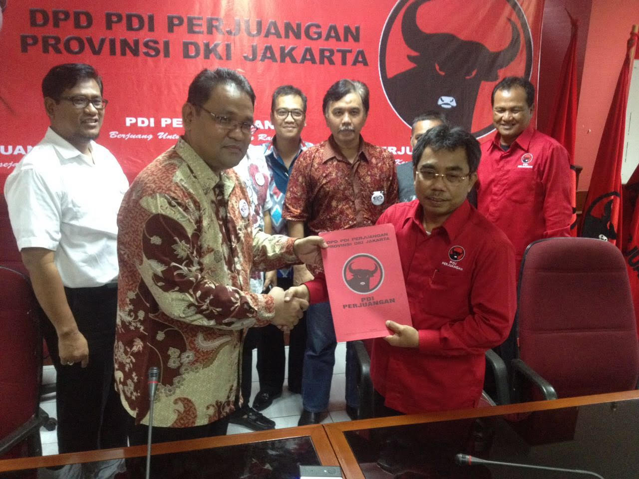 Formulir yang Bang Teguh serahkan langsung diterima oleh Wakil Ketua Badan Pemenangan Pemilu PDIP DKI sekaligus Ketua Penjaringan Cagub dan Cawagub DKI 2017, Gembong Warsono.
